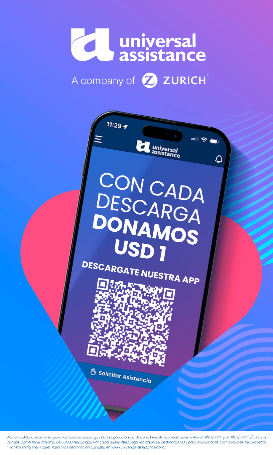 Universal Assistance y Fundación Zurich lanzaron en conjunto una innovadora campaña solidaria en apoyo a las comunidades vulnerables de América Latina. Por cada descarga de la app de Universal Assistance, Fundación Zurich donará 1 USD a las comunidades que forman parte del programa social «Transforming The Future».