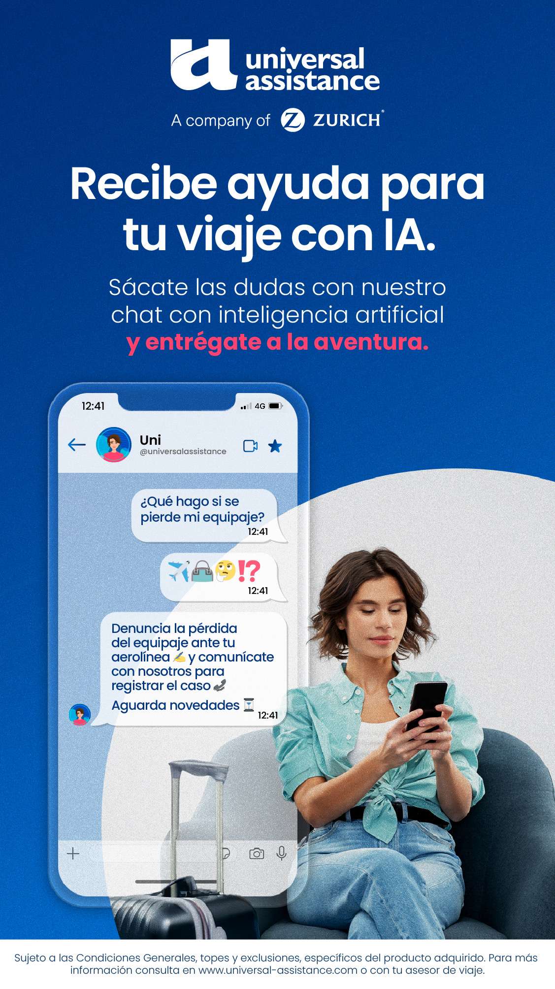 Este es un nuevo servicio que Universal ofrece a sus clientes a través del chatbot, que responde consultas sobre las coberturas en tiempo real. Lo que se busca es aprovechar las facilidades que tiene la Inteligencia Artificial (IA) para seguir trabajando en la excelencia del servicio, mantener la satisfacción de cada uno de los clientes y que se sientan acompañados en cada etapa de su viaje.